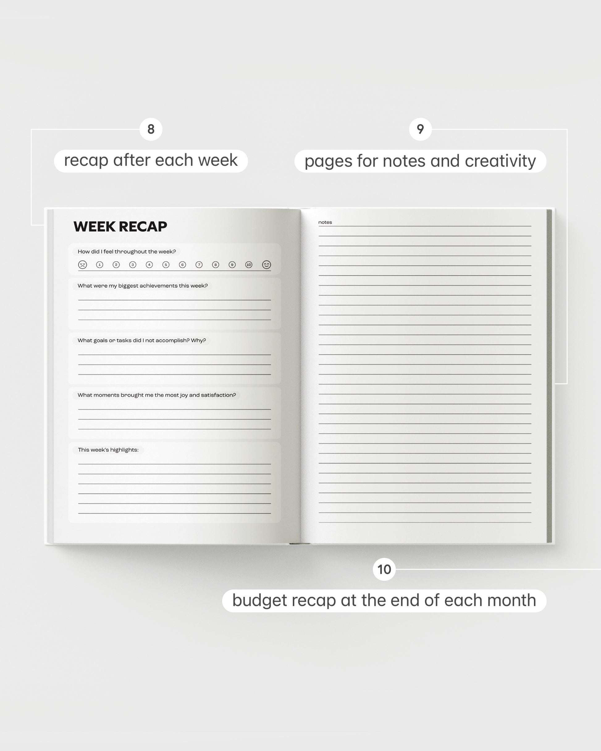 This planner helps me stay organized, take notes, and sketch ideas on blank pages. I also appreciate the detailed budgeting section. it includes savings and investment categories, which is great for improving financial literacy!